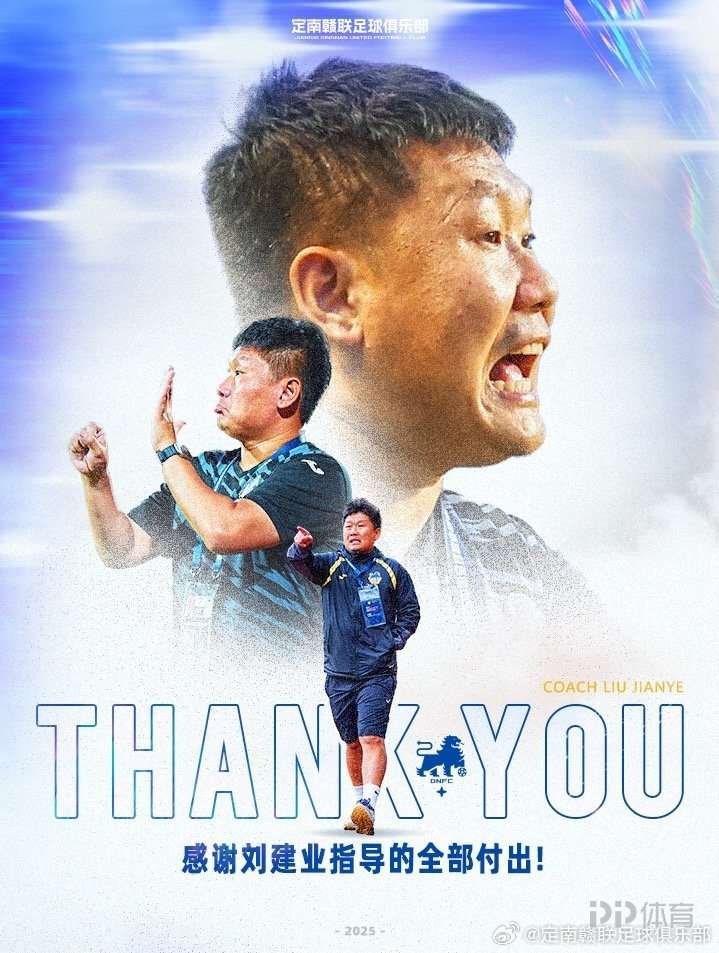 經(jīng)友好協(xié)商,即日起,劉建業(yè)指導(dǎo)不再擔(dān)任定南贛聯(lián)足球俱樂(lè)部一線隊(duì)主教練。