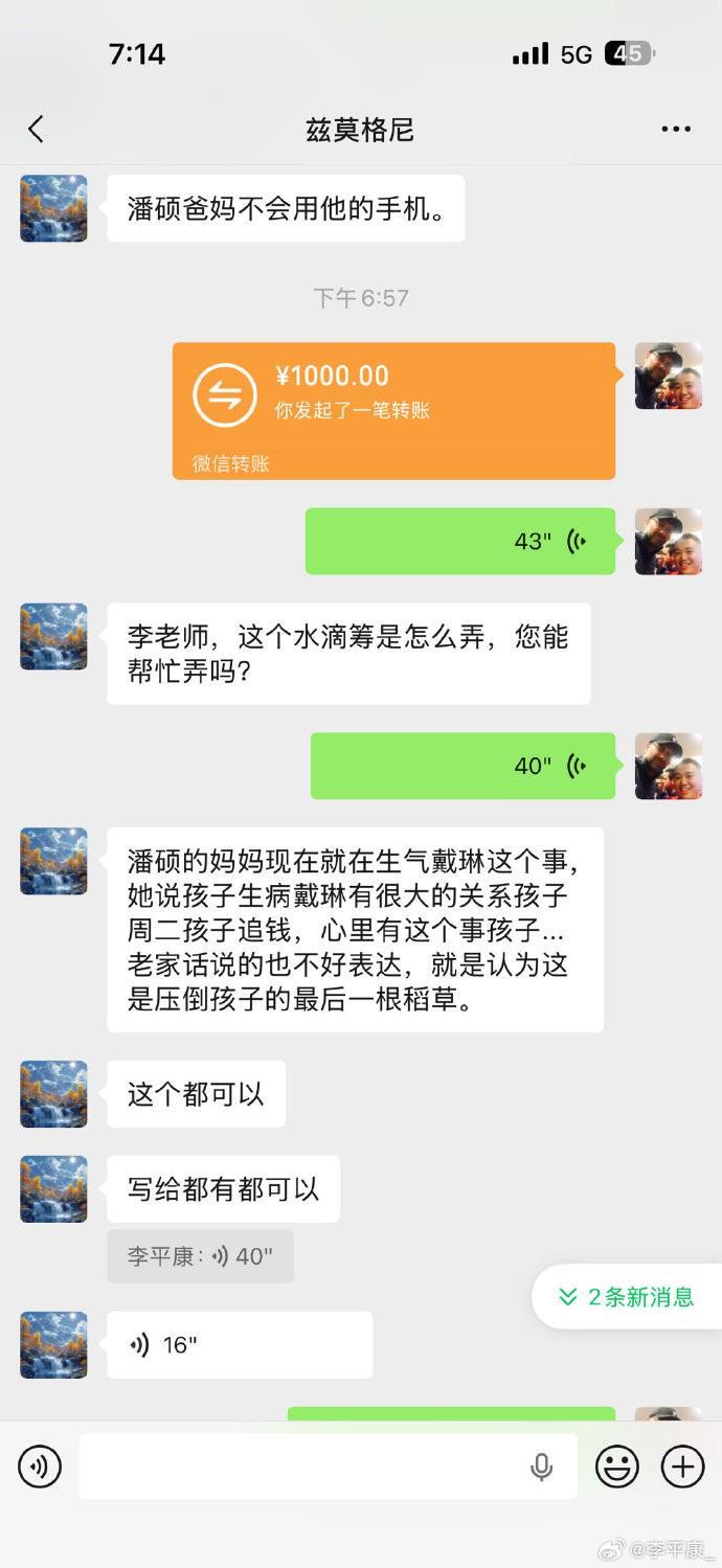 而周二全面曝光此事后戴琳試圖聯(lián)系小潘(目的是刪帖),并轉(zhuǎn)賬3000,可惜為時(shí)已晚,小潘已經(jīng)陷入昏迷甚至無(wú)法接受轉(zhuǎn)賬!小潘一家都是農(nóng)民,戴琳的欠款相當(dāng)于一家人全年的收入,目前可以說(shuō)已經(jīng)山窮水盡!在我的勸說(shuō)下,他們答應(yīng)開通水滴籌,尋求各界好心人的幫助。
