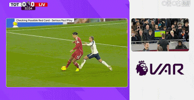 第33分鐘,哈維-西蒙斯踩踏范戴克小腿,VAR確認后被紅牌罰下,熱刺少一人作戰(zhàn)!