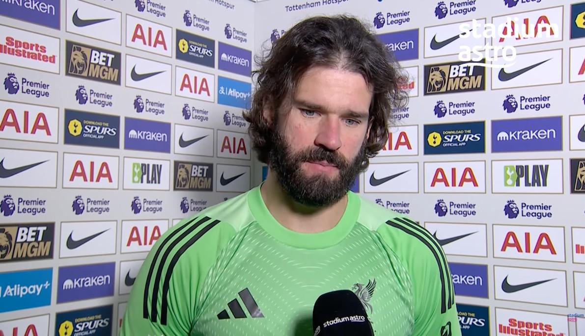 英超第17輪,利物浦客場2-1戰(zhàn)勝熱刺。利物浦門將阿利松賽后接受了Stadium Astro的采訪。